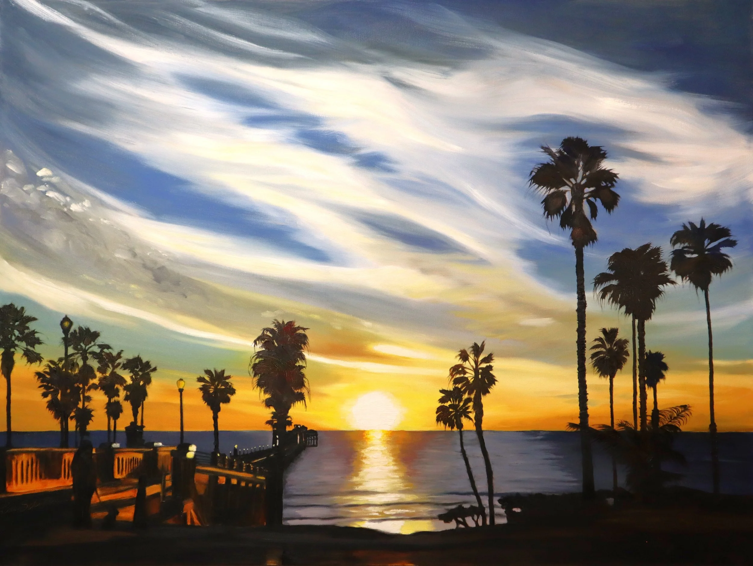 Sunset at the Pier, oil on canvas, 40 x 30 in